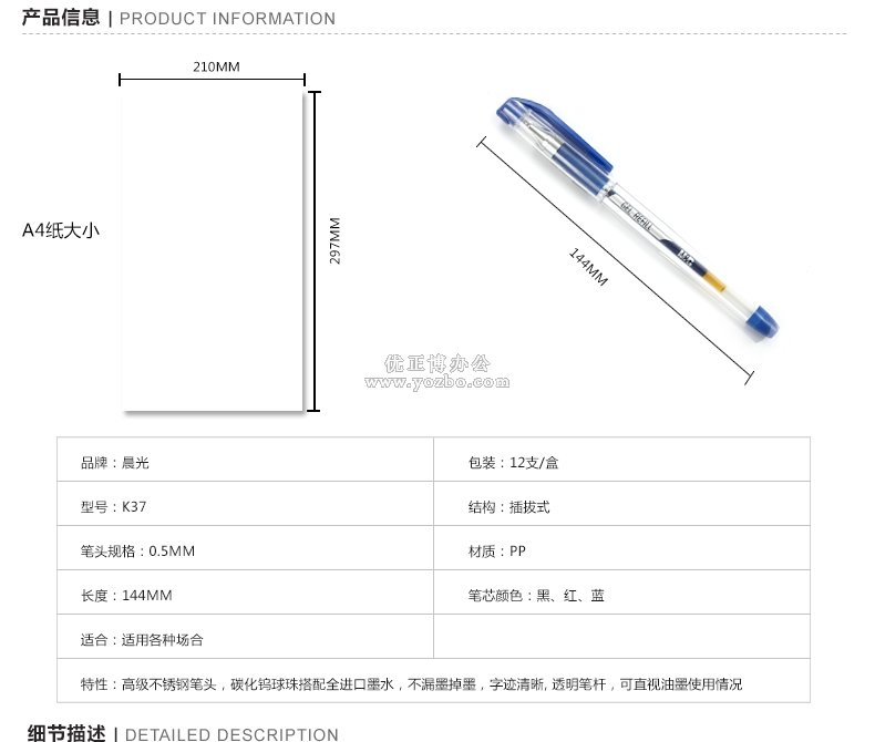 > 辦公用品 > 書寫工具 > 中性筆 > 晨光中性筆 K-37 0.38mm