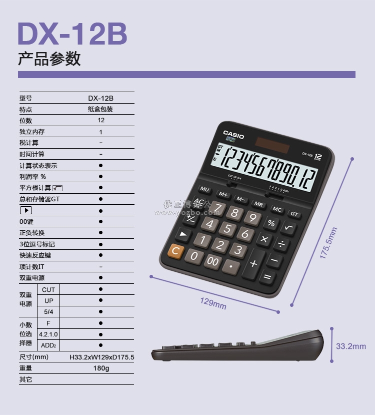 > 辦公用品 > 桌面用品 > 計算器 > 卡西歐(CASIO)12位數桌面型計算器 DX-12B