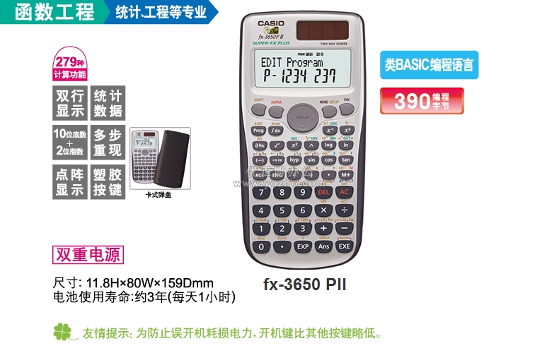 卡西歐(CASIO)工程專用函數編程計算器 FX-3650P