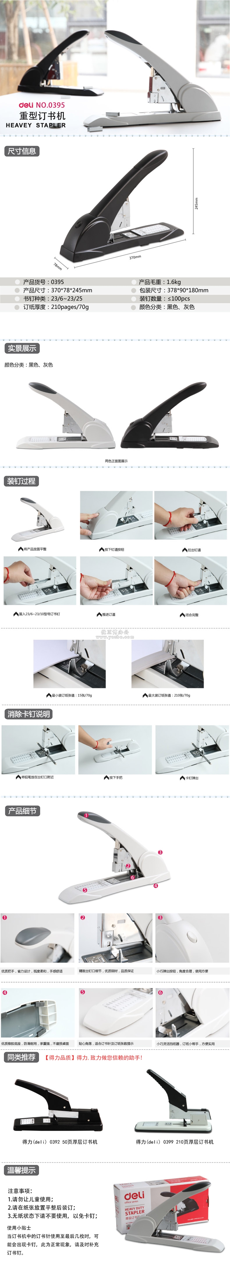 • 得力0395重型訂書機
