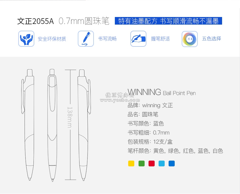 > 辦公用品 > 書寫工具 > 圓珠筆 > 文正 按制圓珠筆 2055A 0.7mm