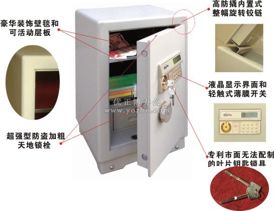 1.以高于國家3C的標(biāo)準(zhǔn)來制造保險箱.箱體采用一次成型技術(shù),用比普通鋼板強數(shù)倍優(yōu)質(zhì)防鉆合金鋼制造,箱體鋼板厚度為6mm,門板厚度為8mm,更保險更堅固!