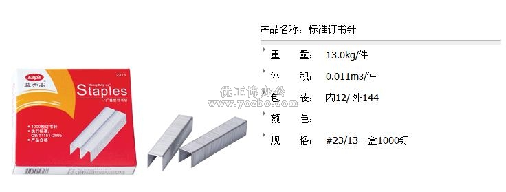 > 辦公用品 > 桌面用品 > 訂書針 > 益而高 標(biāo)準(zhǔn)訂書針 2313 #23/13一盒1000釘