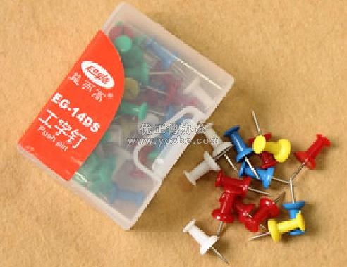 重 量: 11.5kg/件 體 積: 0.039m3/件 包 裝: 內48/外288 顏 色: 什色 規 格: 彩色工字釘50粒