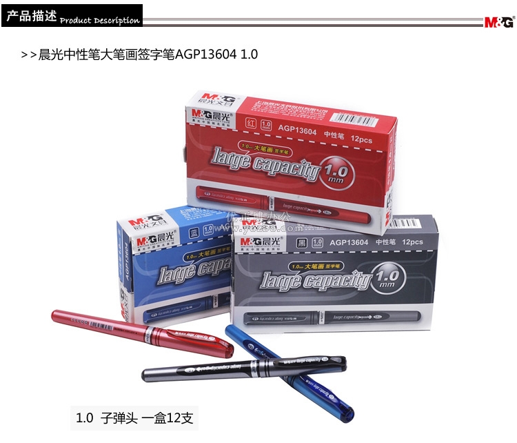 > 辦公用品 > 書寫工具 > 中性筆 > 晨光AGP-13604大容量簽字筆 1.0mm