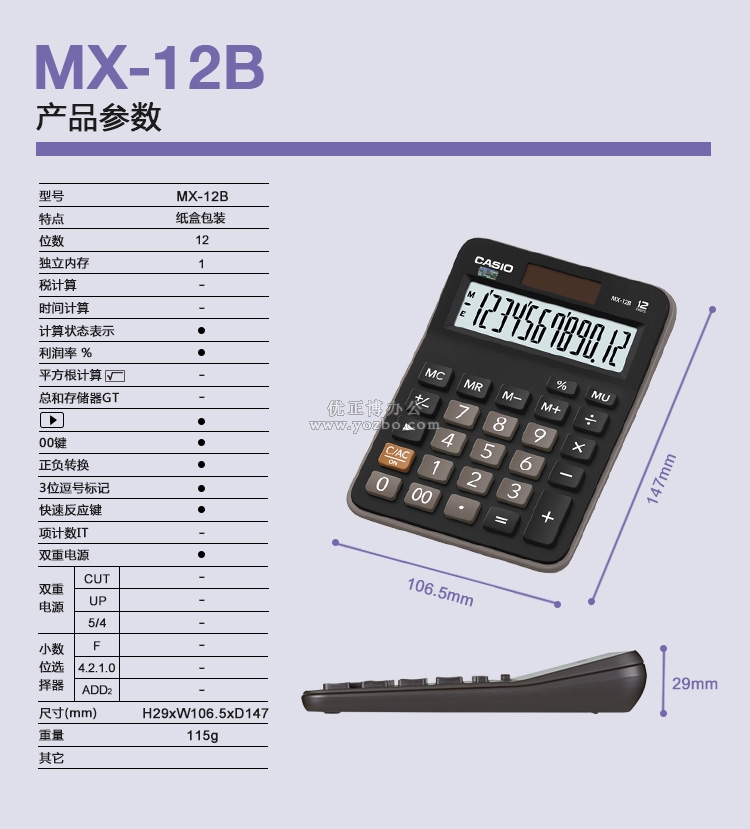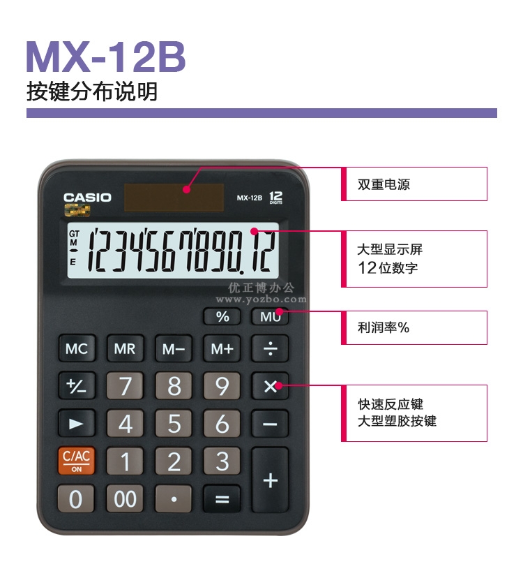 > 辦公用品 > 桌面用品 > 計(jì)算器 > 卡西歐(CASIO)12位數(shù)桌面型計(jì)算器 MX-12B