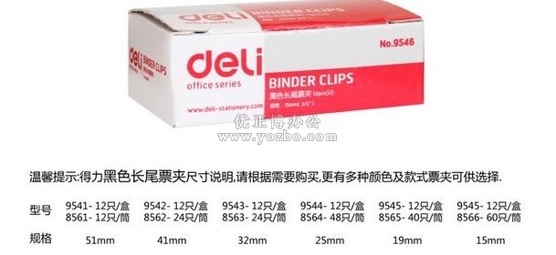 得力黑色長尾票夾15/19/25/32/41/51mm(紙盒)分享 暫存