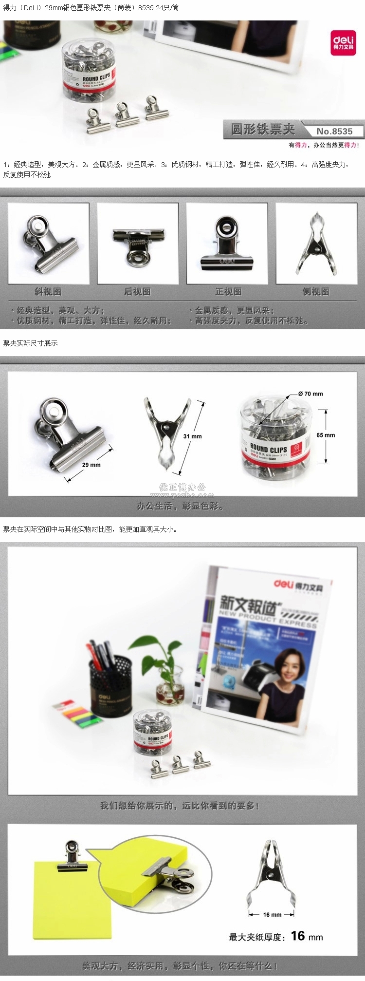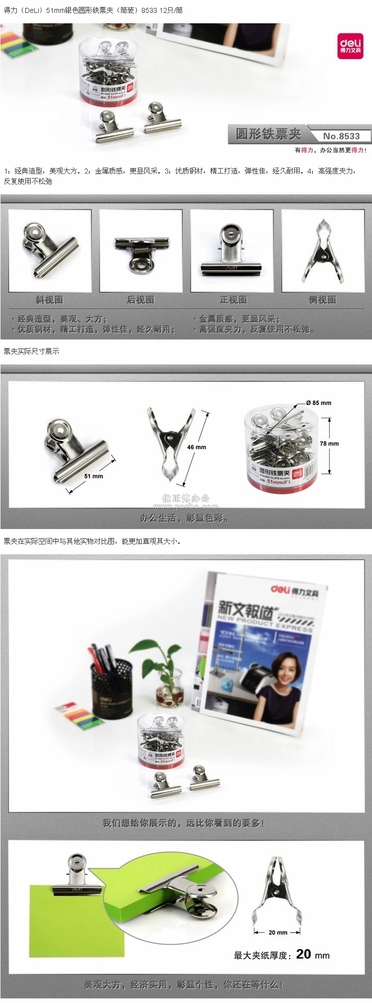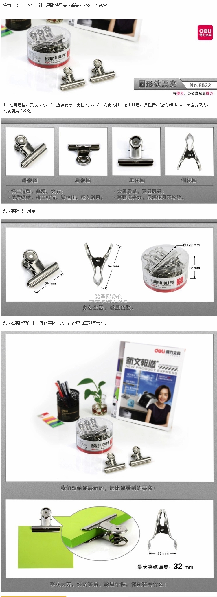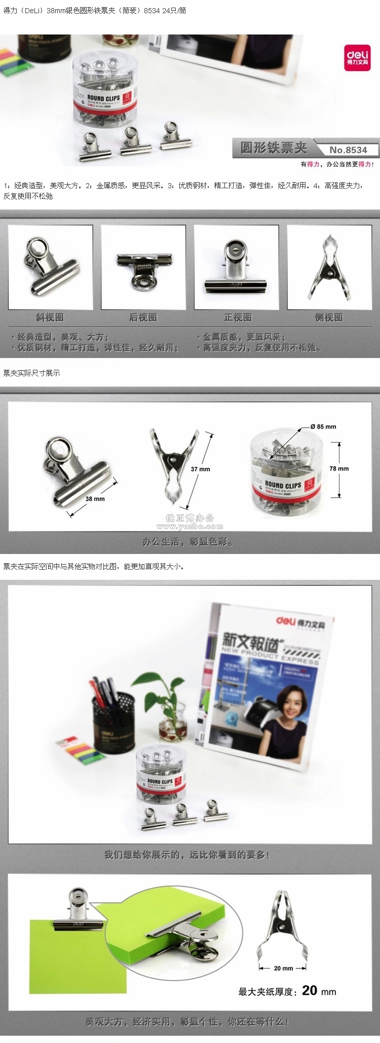 得力 筒裝圓形鐵票夾 規(guī)格19~64mm
