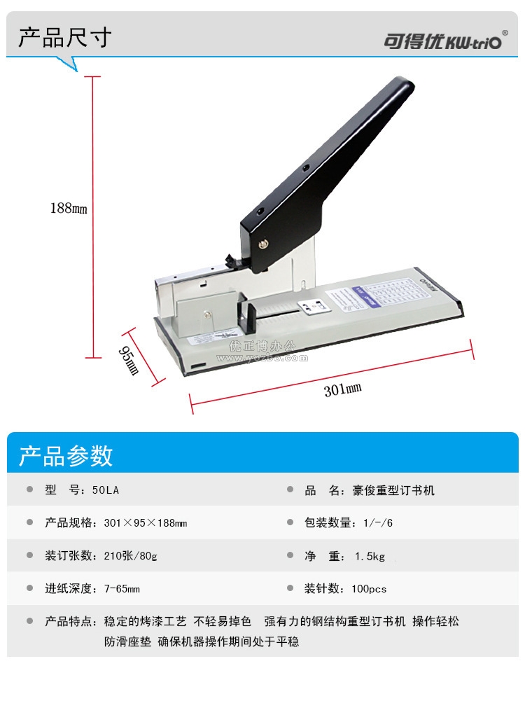 可得優(yōu)重型訂書機(jī) 加厚訂書機(jī) KW-50LA(可訂240張)