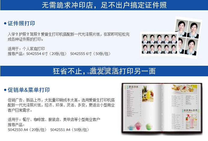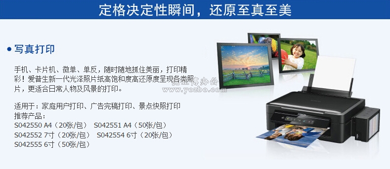 - 較強的防刮蹭、防水及耐光性,配合愛普生正品墨水,讓您的照片保存的更加長久。