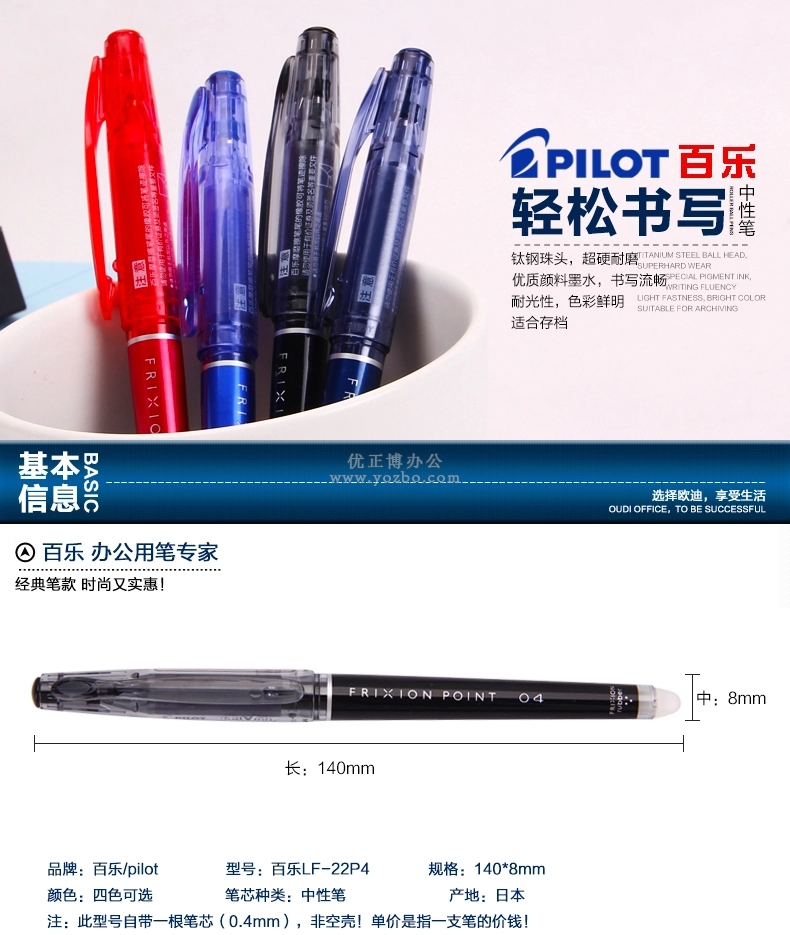 > 辦公用品 > 書寫工具 > 中性筆 > 百樂進口LF-22P4可擦筆摩磨擦中性筆 0.4mm