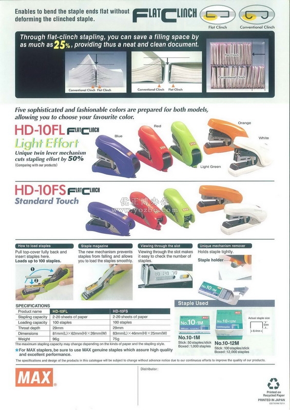 > 辦公用品 > 桌面用品 > 訂書機 > MAX美克司HD-88R訂書機 拱形訂書機帶起釘器