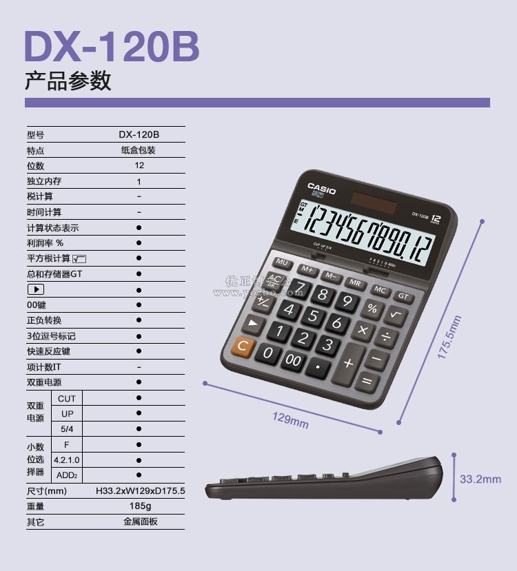 > 辦公用品 > 桌面用品 > 計算器 > 卡西歐(CASIO)12位數桌面型計算器 DX-120B