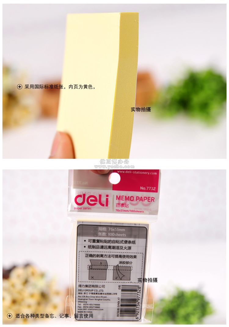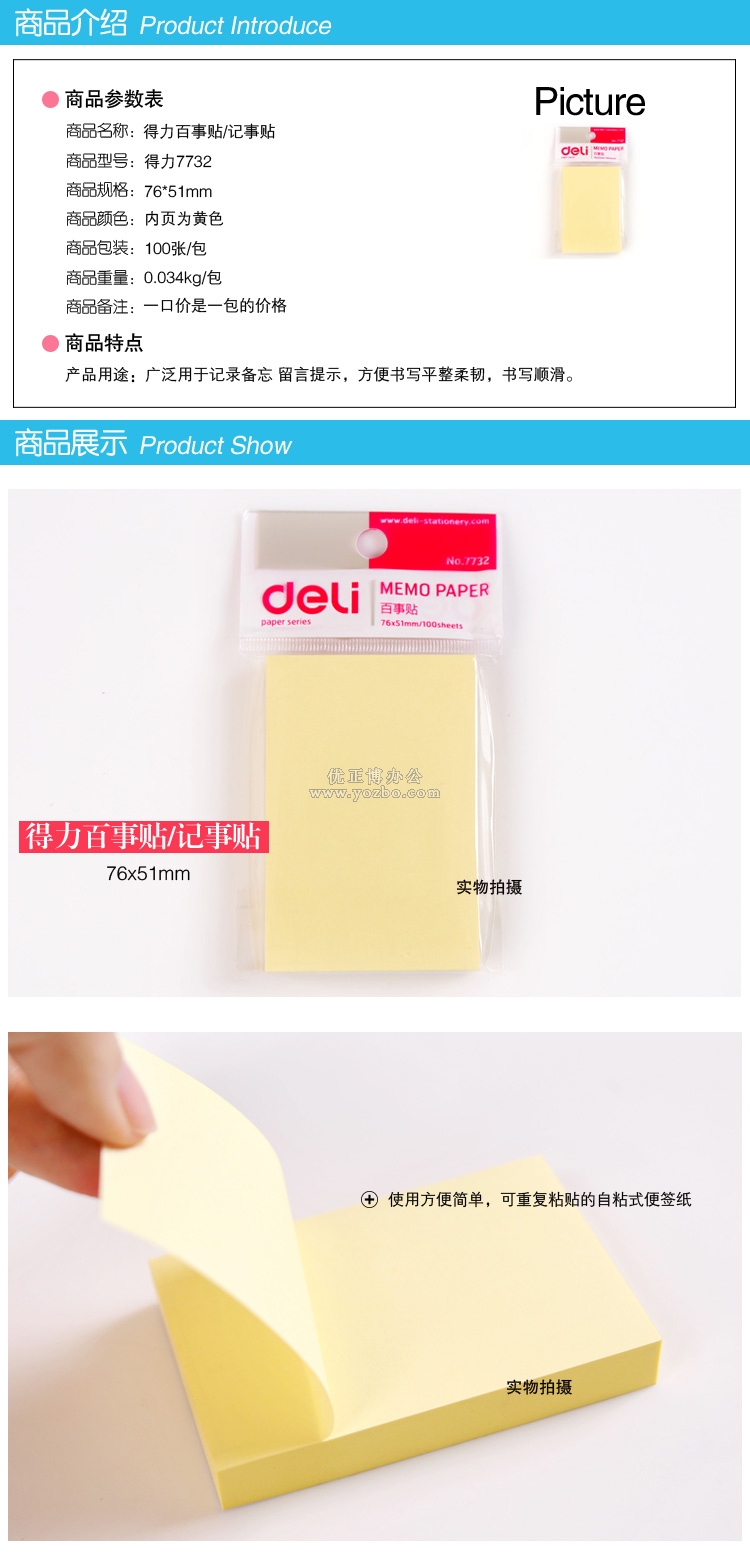 > 辦公用品 > 辦公本冊 > 告示貼 > 得力 7732 百事貼 便利貼 76*51mm(2*3)