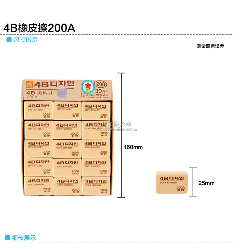 > 辦公用品 > 桌面用品 > 橡皮擦 > 南韓200A 4B 大號橡皮擦(39*25*16mm)