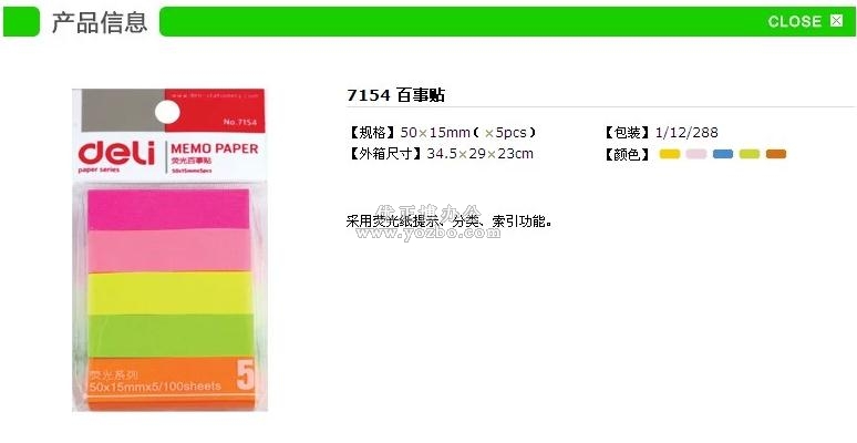 > 辦公用品 > 辦公本冊(cè) > 告示貼 > 得力7154 熒光紙百事貼(五色裝) 50×15mm
