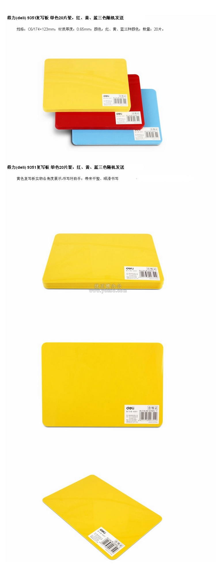> 辦公用品 > 桌面用品 > 復寫墊板 > 得力9351 復寫板(174x123mm)